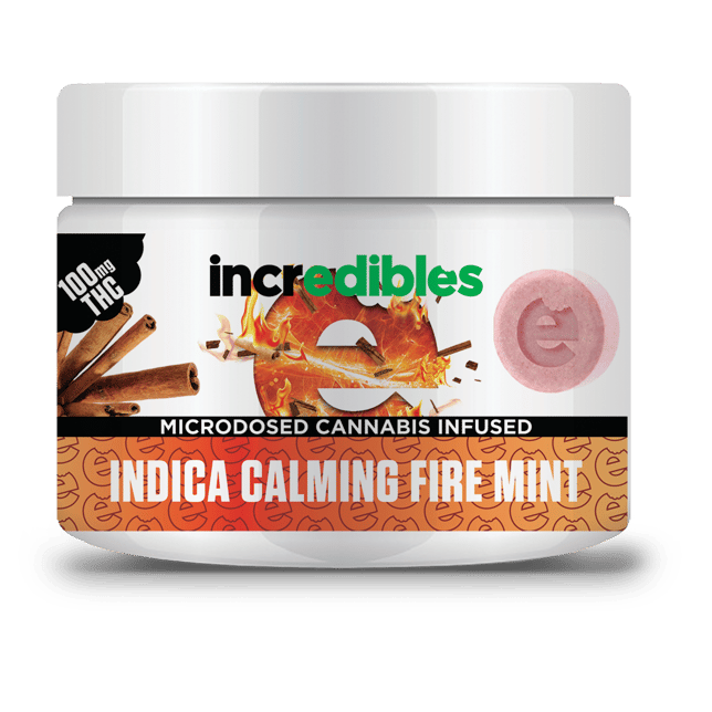 Handcrafted with sustainably-sourced and gluten-free ingredients, incredibles Indica Calming Fire Mint is sugar-free, vegan and a great microdosed option for new edible users or those seeking the medicinal benefits of cannabis with minimal/no psychoactivity - 2mg THC per piece.