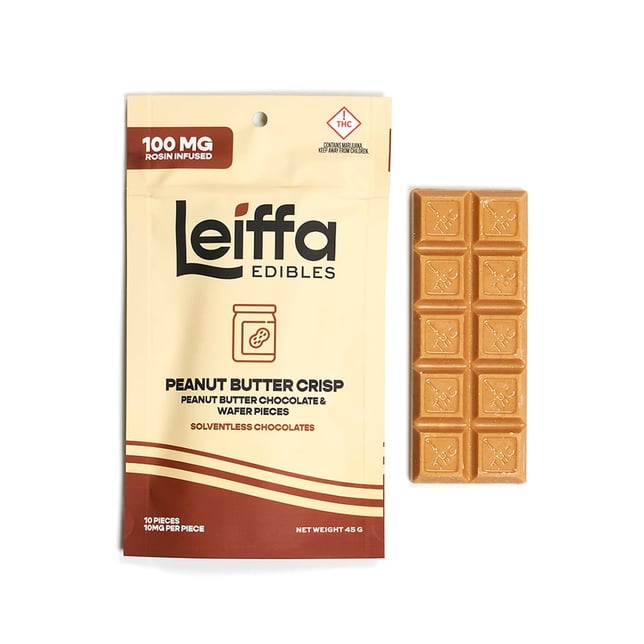 Crunch into delight with Peanut Butter Crisp, a chocolate bar that blends creamy indulgence with satisfying texture. Made with smooth peanut butter chocolate and crispy wafer pieces, each bite offers a perfect balance of nutty richness and a delightful crunch. Infused with hash rosin, the flavors are elevated to a new level, creating a harmonious blend of sweet, savory, and earthy notes. Peanut Butter Crisp is a must-try for anyone craving a nostalgic yet elevated treat that satisfies on every level.