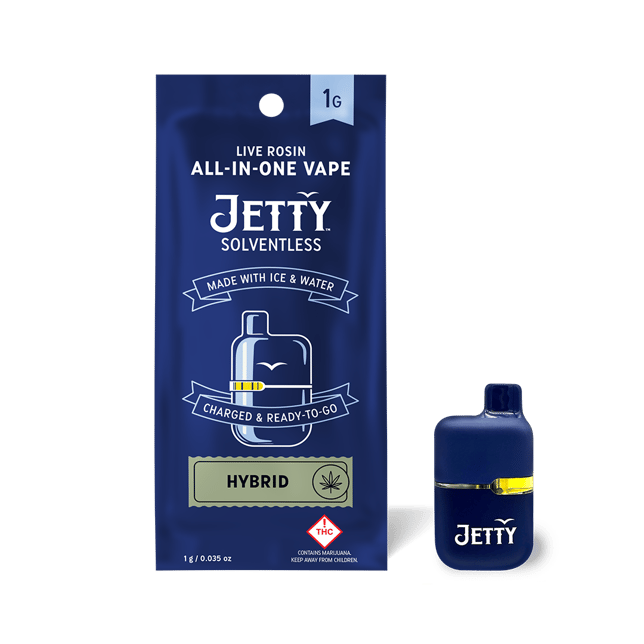 Jetty Solventless is America's #1 live rosin vape. It is the cleanest oil available, made from cold water hash that’s extracted using only ice and water. Our unique filtration process removes excess fats and waxes increasing purity (and THC %) while keeping all the tasty terpenes. The result: a light, golden oil and unmatched flavor profile.